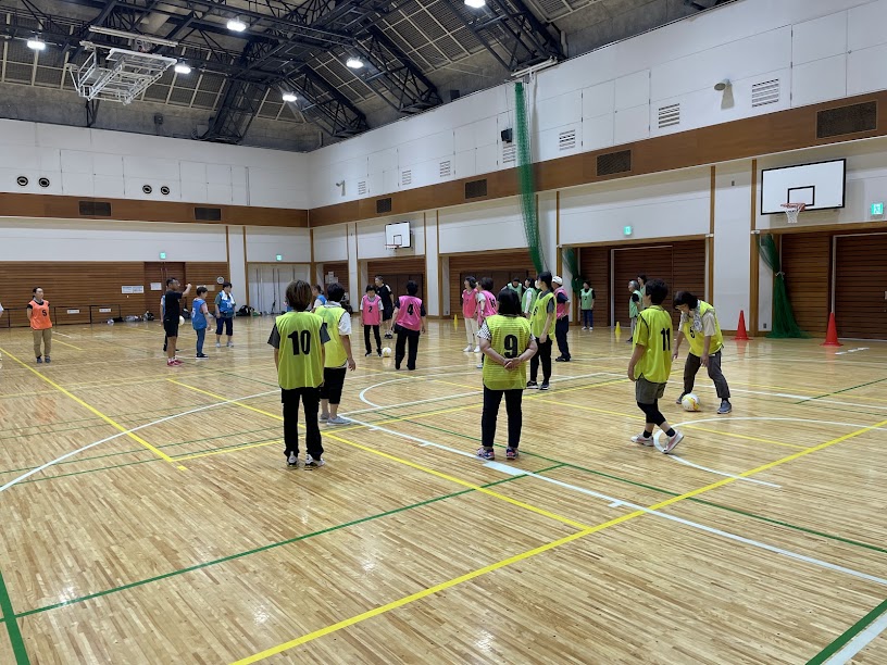 7月15日、火曜日、13時30分から15時、中央公民館において、浦安市社会福祉協議会 東2支部27名のみなさんに参加いただいて、ウォーキングフットボール体験を開催しました。