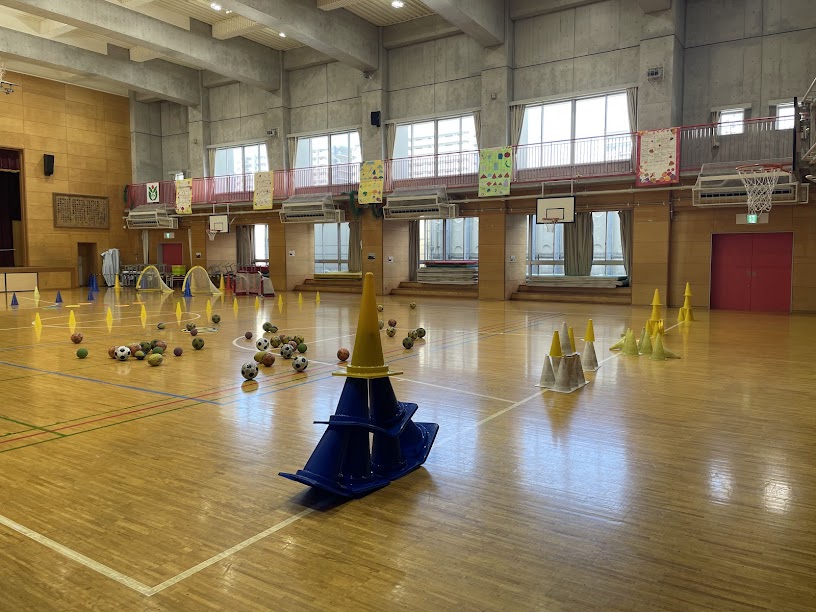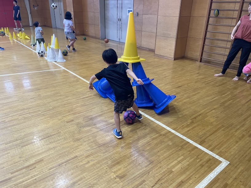 ドリブル、シュート、キックボウリングを自由に楽しめるセクションを作って、すきなことをします。
