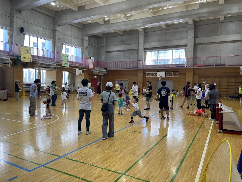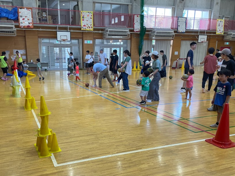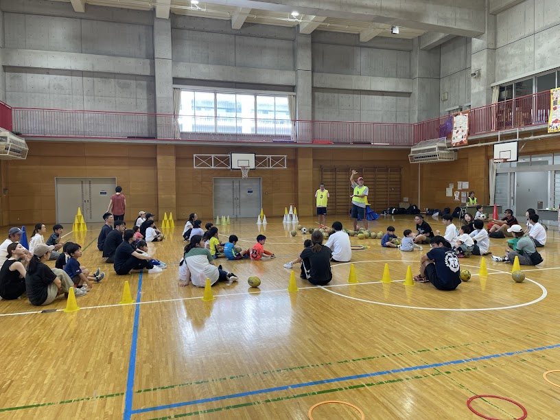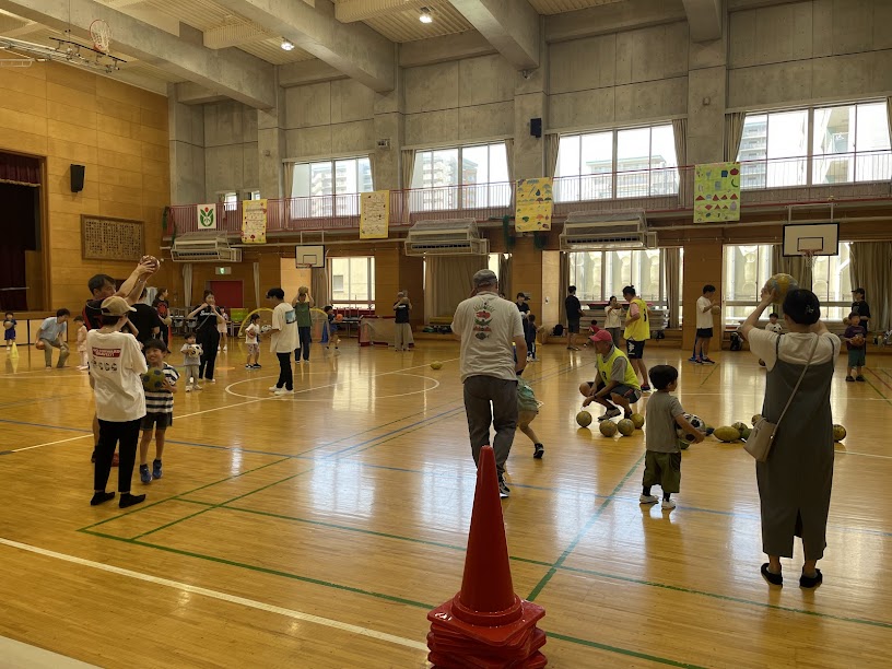 27組、70名くらいのキッズ、保護者、ご家族が参加して、みんなで楽しくボール遊びをしました。