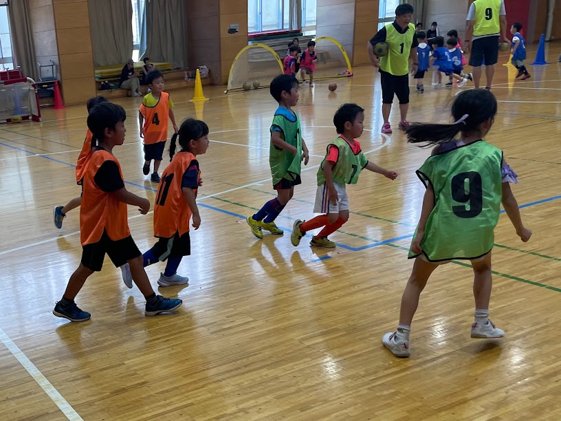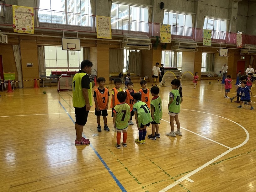 一緒に来てくれたお兄さん、お姉さんも一緒に、年長以上のコートと、3歳児・4歳児のコートに分かれてゲームをしました。
