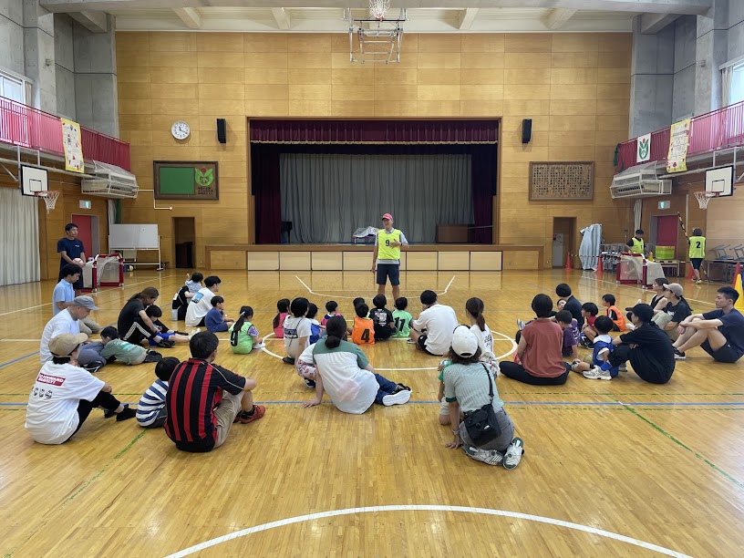 今回は、暑さ対策として、日の出南小学校体育館をお借りして行いました。