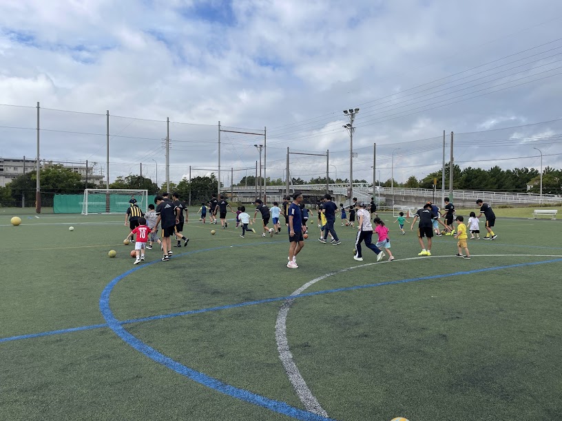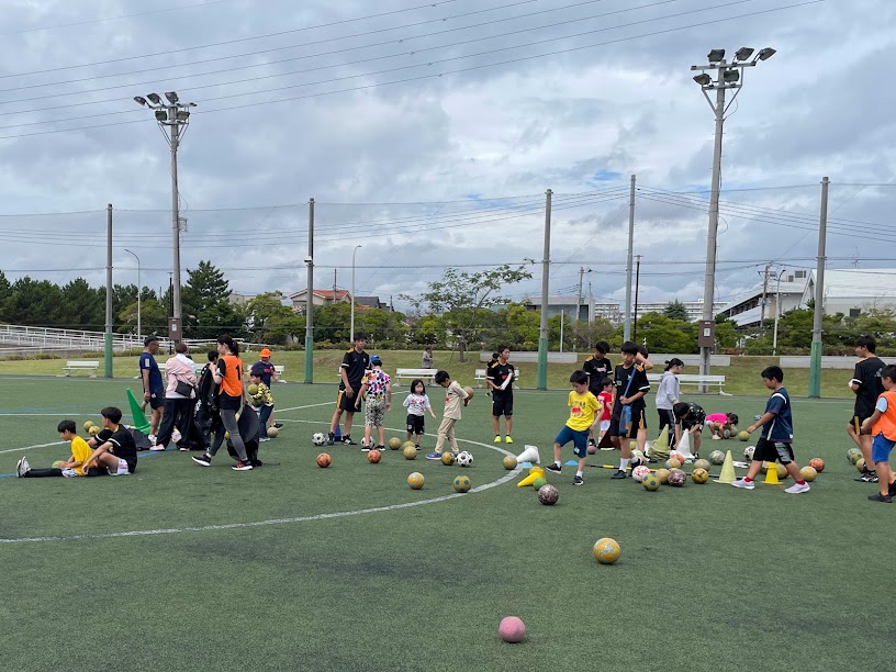 参加者、ご家族、高校生・学生・社会人ボランティア、スタッフ、あわせて80名のみなさんで、元気いっぱいボールを蹴りました。