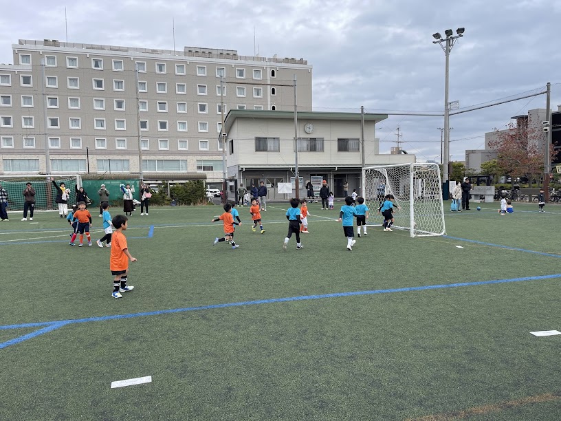 11月23日、日曜日の午前中、ブリオベッカフィールド明海で、キッズ(U-6)わくわくサッカー大会(秋)を開催しました。