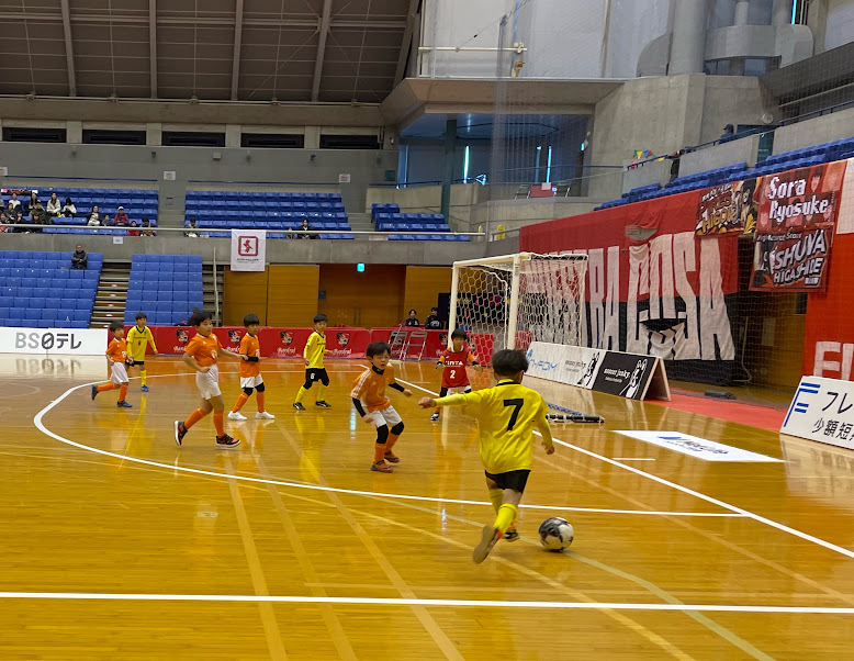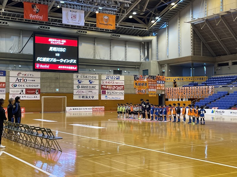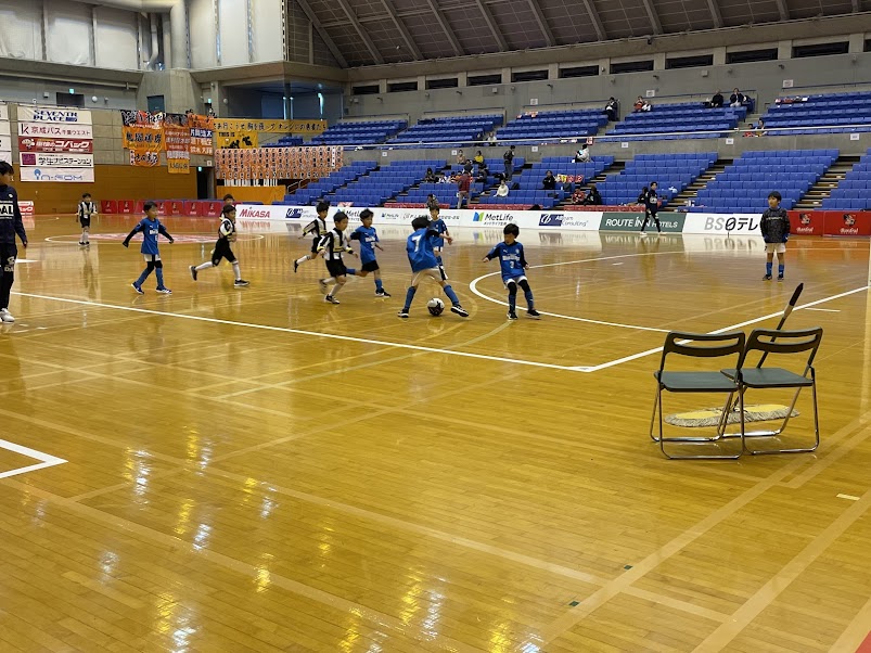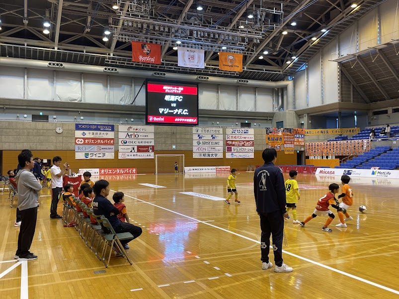 続いて、メインアリーナで前座試合として、浦安市サッカー協会4種委員会に加盟するジュニアサッカークラブの対戦が行われました。