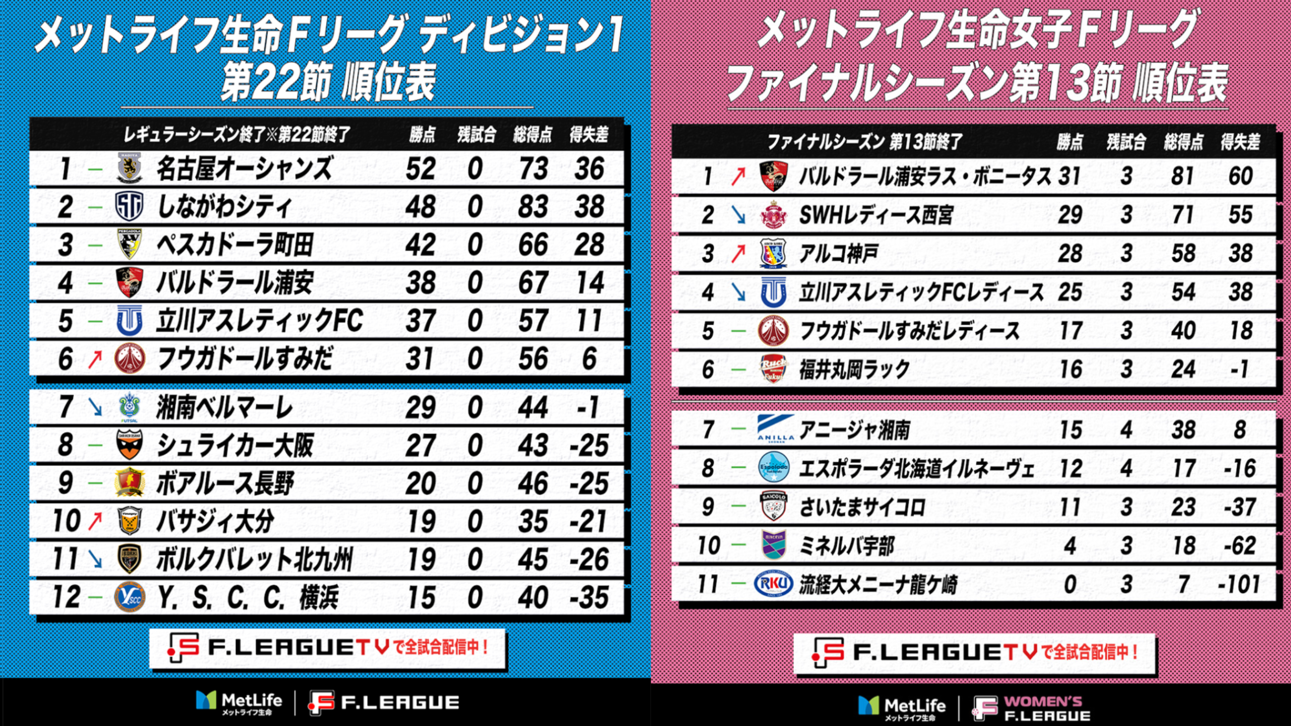 【プリメーロ】12.28(日)アウェイ長野戦を5-2で勝利し、レギュラーシーズンを4位で終了しました。1月は日本代表のアジアカップ(inインドネシア)にて中断、2月より下記日程にてファイナルシーズン上位リーグがスタートいたします。