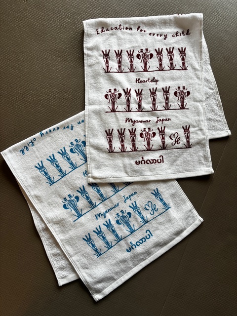 また、ハートシップ・ミャンマー・ジャパンでは、HMJチャリティタオル(1枚1,000円)を販売、収益は全額、次の「希望」を届けるための支援金として活用するとのことです。