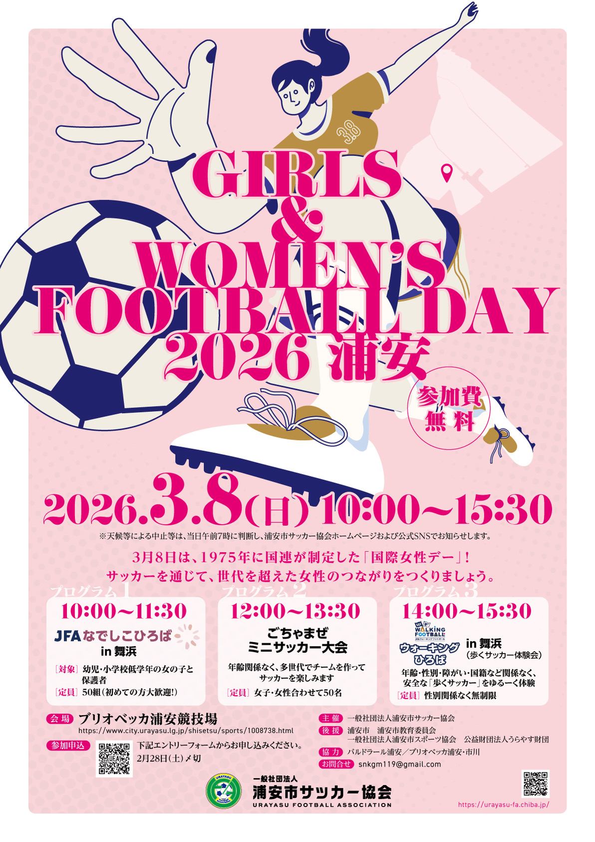 浦安市サッカー協会では、ハートシップ・ミャンマー・ジャパンと連携して、次回の発送(2026年春予定)に向け、3月8日に開催するGirls & Women’s Football Day」および、3月15日の浦安まちづくりフェスタwithでサッカー用具の回収ステーションを設置いたします。