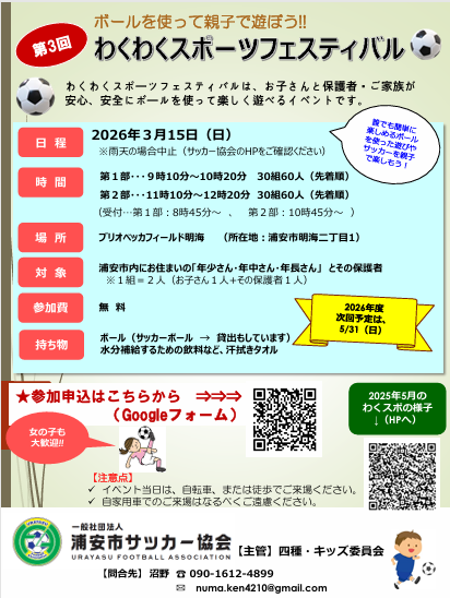 ■市内サッカークラブに”未入会”のお子さんに限っては、2025年4月に【小学1年生】に進学されたお子さんとその保護者も参加可能です。