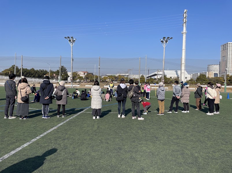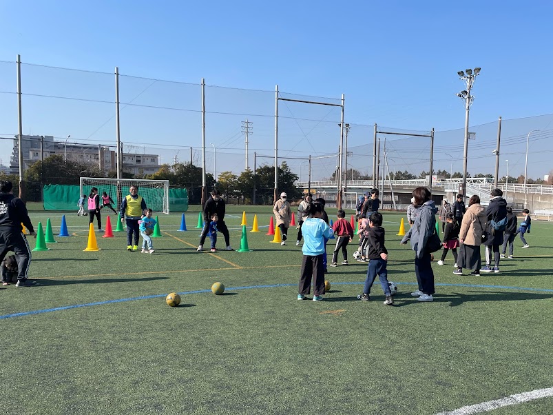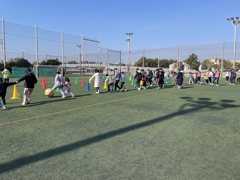 未就学児から中学生までの男女、ご家族、お友だち、スタッフあわせて50名以上のみなさんで、楽しくボールを蹴りました。