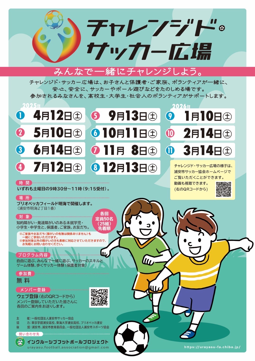 チャレンジド・サッカー広場、今年度最終回は3月14日、土曜日、9時30分から、ブリオベッカフィールド明海で開催します。