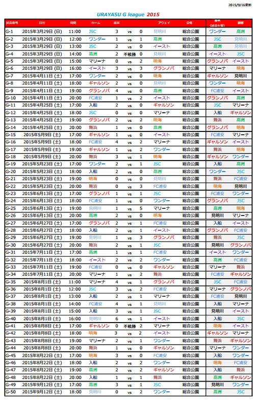 すべて読む【4種】2015年 浦安市Gリーグ 結果&日程表(2015.9.16版)
